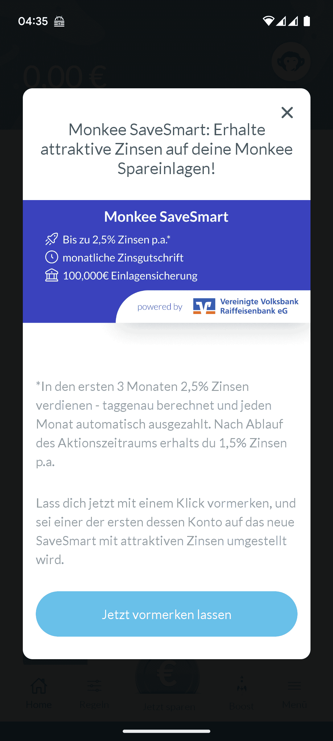 Monkee SaveSmart: 2,5 % Zinsen p.a. für 3 Monate, danach 1,5 % p.a.